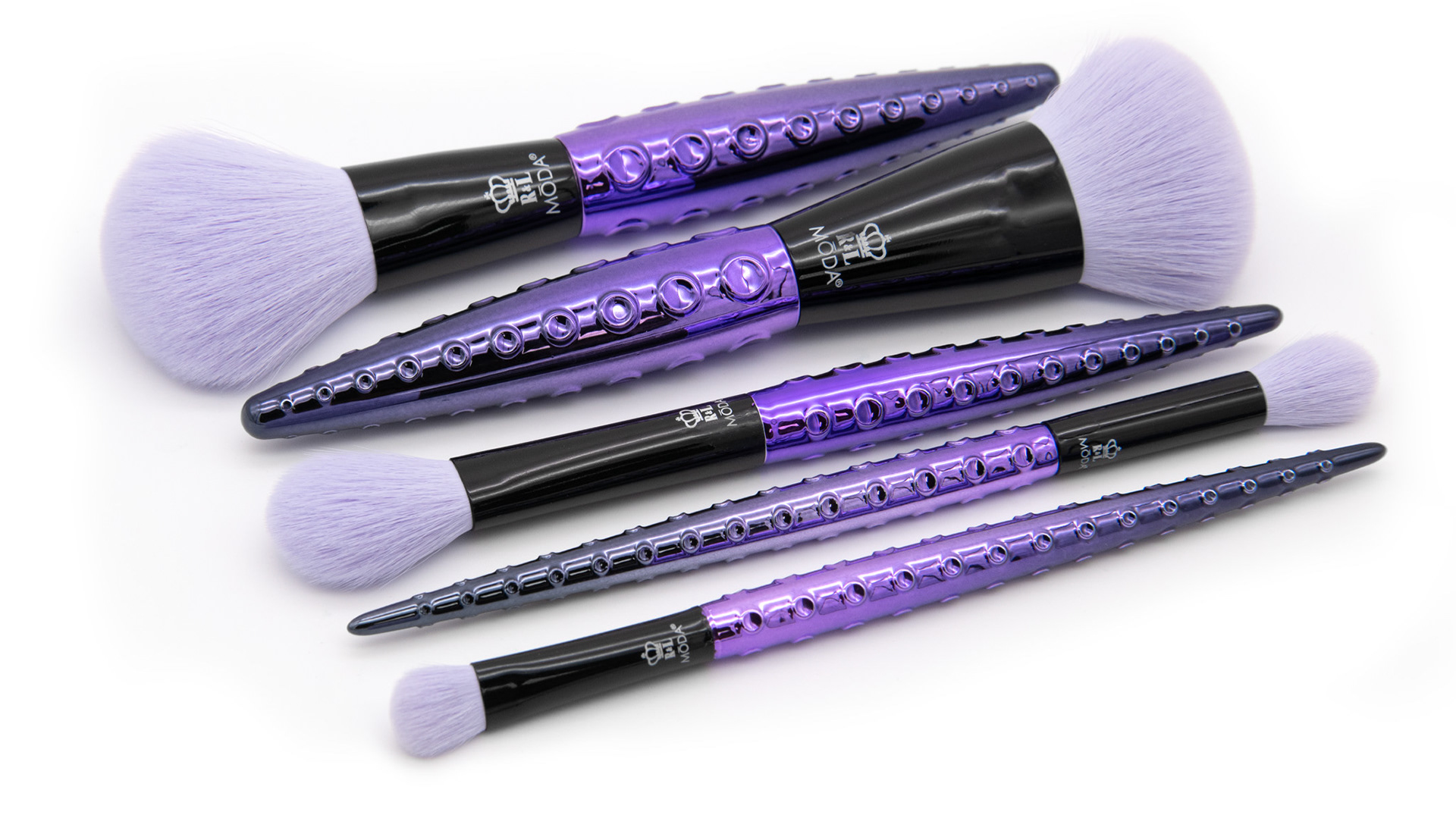 My goal was to capture the colors and textures of the sea witch character, Ursula, so I guided the production team to create a unique mold for brush handles that resemble octopus tentacles. The handles feature vibrant purple handles that resemble the character, but are also the brand's signature color.