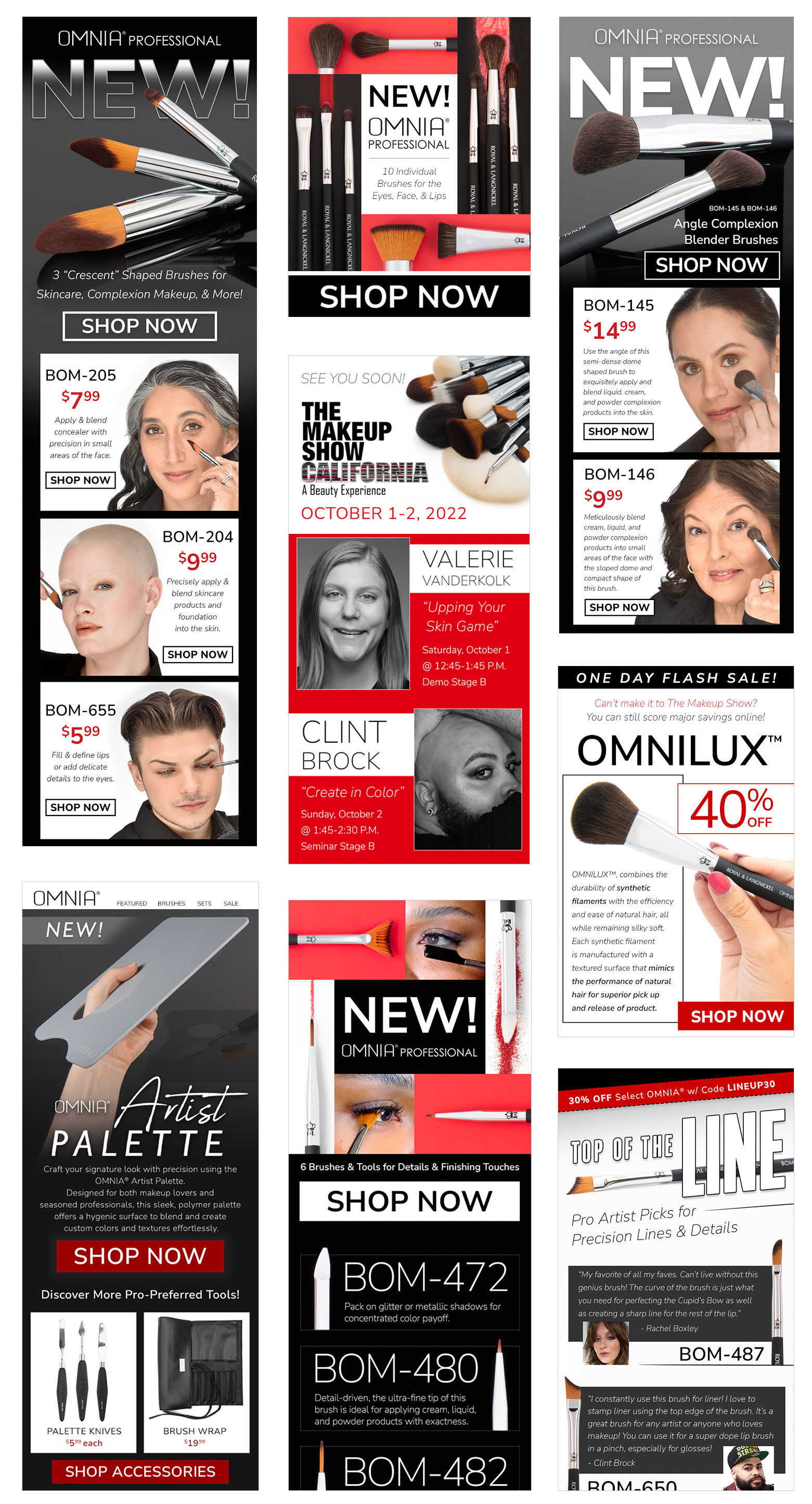 Photography and email designs for OMNIA product launches and sales campaigns.